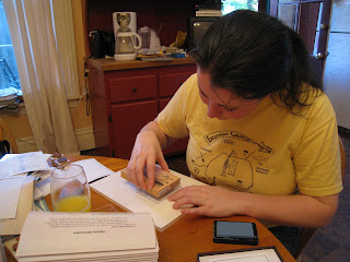 3. Briana expertly stamps the backs of the RSVP cards.